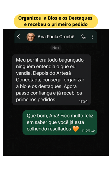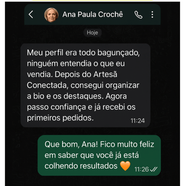 Veja o antes e depois daqueles que aplicaram Artesã Conectada e fecharam vários pedidos em menos de 1 semana.